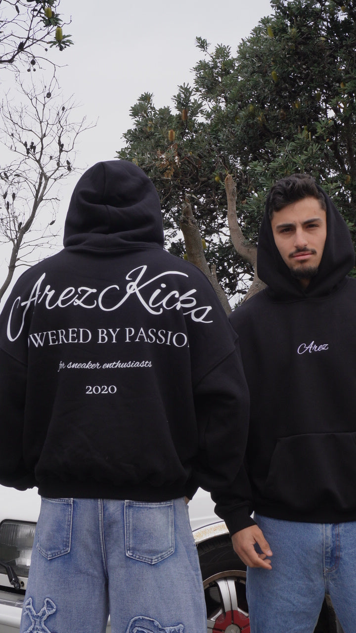 Inspired by our love for sneakers, the graphic on this hoodie showcases the Arezkicks logo, symbolizing our dedication to hard work, the sneaker community, and the culture of building a family.